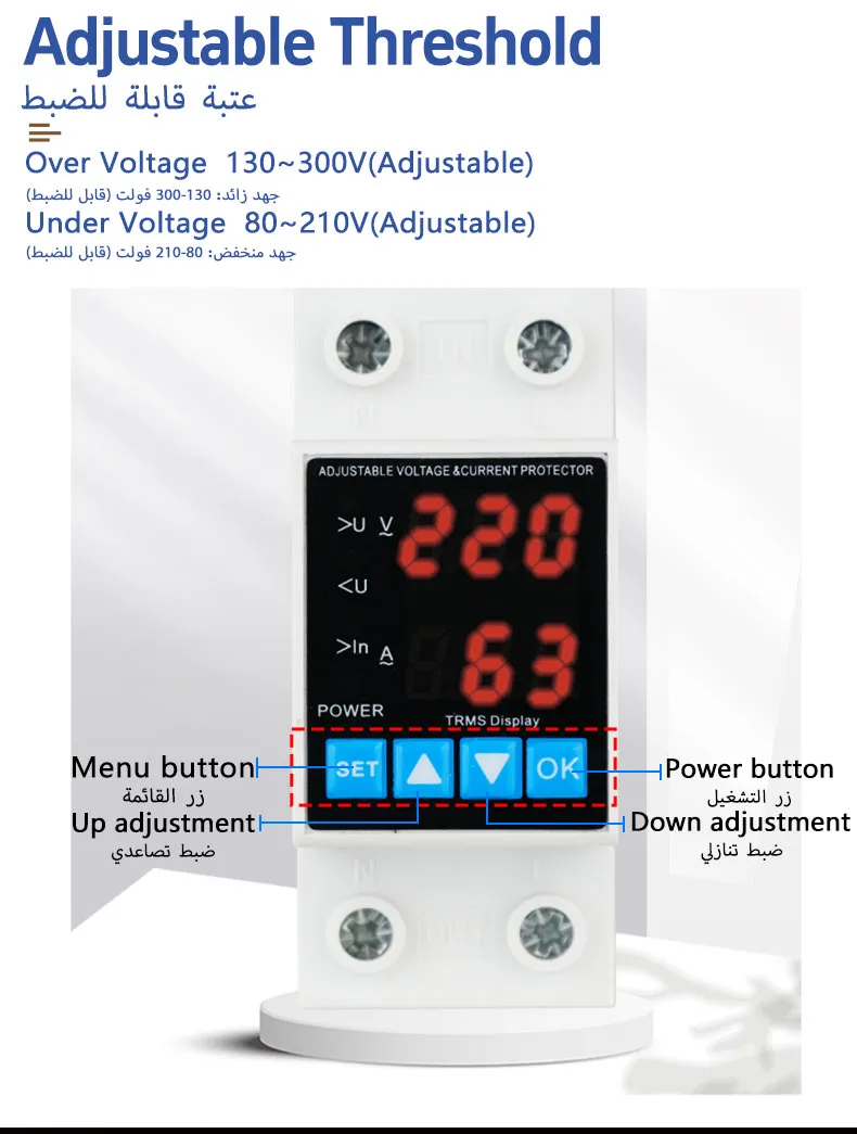 - Functietest: Verlaag handmatig of met behulp van een instelbare voeding de spanning tot onder de onderspanningsdrempel en kijk of de beschermer de belasting afsnijdt; stel vervolgens terug naar de normale spanning en bevestig of de beschermer automatisch wordt gereset na de ingestelde vertraging.