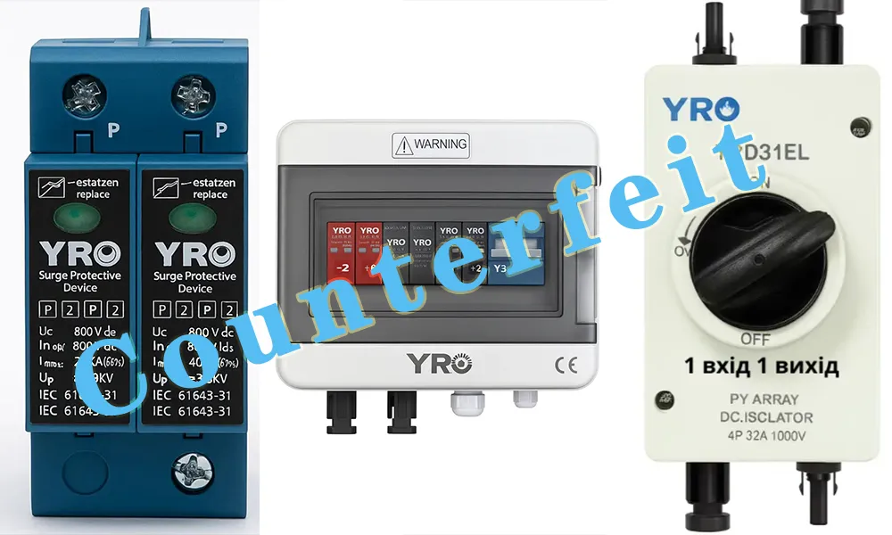 De laatste tijd hebben we regelmatig feedback van klanten ontvangen dat er namaakproducten zijn aangetroffen in de YRO-producten die ze hebben gekocht, waarbij meerdere items betrokken zijn, zoals stroomonderbrekers, combinerboxen en overspanningsbeveiligers.